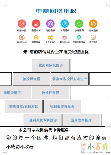 不成功不收费,淘宝京东拼多多维权控价,我们致力于为全球品牌方提供线上维权...