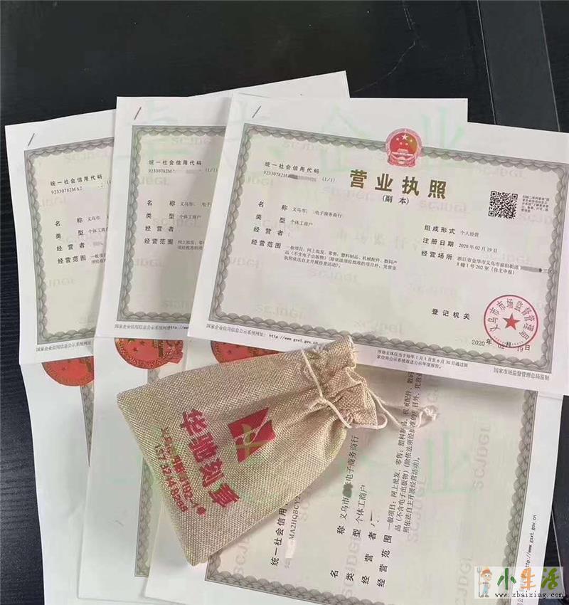 3)个体户名称:由工商局预先核准通知书,随机核名取名,如义乌市XX商行/义乌市XX电子商务商行。