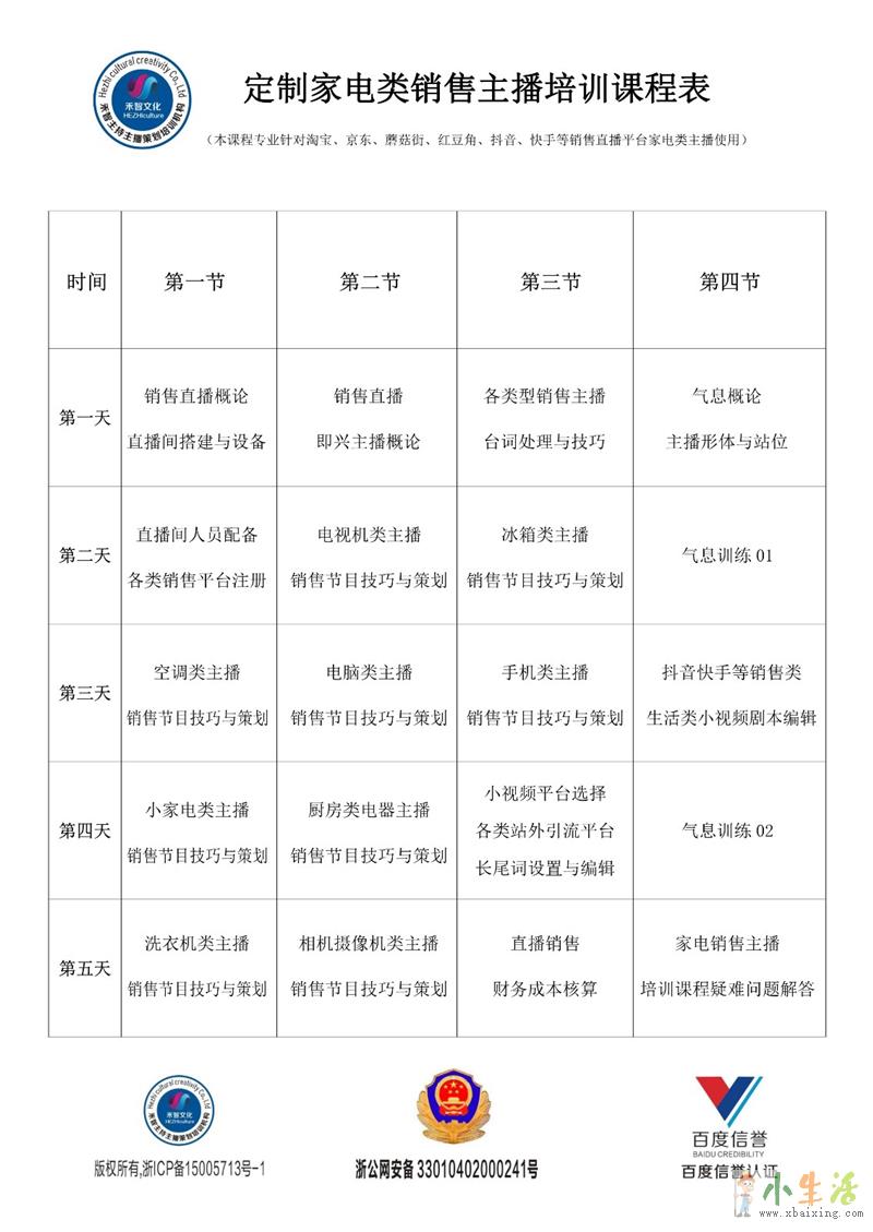 课程内容:气息发音,普通话调整,台词方法www.xbaixing.com小生活网。销售节目策划(美食类,饰品类,