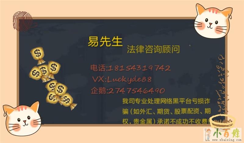 虽然随着国家的法制建设越来越完善,各种骗局越来越多的被揭发出来,但是骗子们的手段也是在不断的更新。把投资者带到一夜暴富的美梦中而不自知小.百.姓.网。随着越来越多的投资者意识到自己可能被骗,本人法律咨询团队这里已经帮助了很多投资者追回资金成功,已经为投资者挽回了上千万的损失!行动越早成功的可能性就越大,我们的理念是还给市场一个清静,还给投资朋友一个公平公正的交易市场!