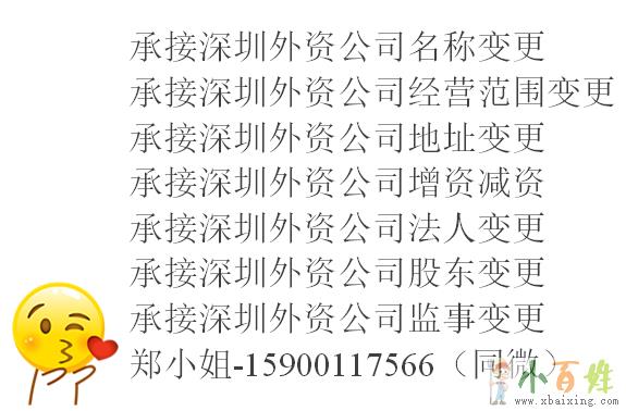 小 百 姓 网承接深圳外资公司新设立,外资公司地址变更,名称变更,股东变更,外资公司记账报税,不经营注销,吊销转注销,郑-15900117566(同微)欢迎www.xbaixing.com