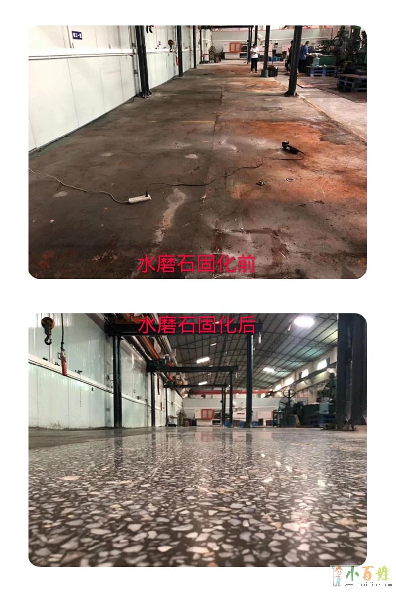 一、水磨石起灰处理+水磨石抛光+旧地面翻新剂:是一种无色透明粉剂锂基材料、使用方便、无毒、不燃、渗透力强、可永久性密封混凝土,符合所有VOC规则原文www.xbaixing.com。它由无机物、化学活性物质和硅合物组成,通过有效渗透,与水磨石中混凝土中化学成分发生渗透性的化学反应,使混凝土中的各成分固化成一坚固实体,从而得到一个无尘、致密的整体,大大提高混凝土的抗渗、耐磨、冻融循环、硬度等各种性能指标小+百+姓+网。