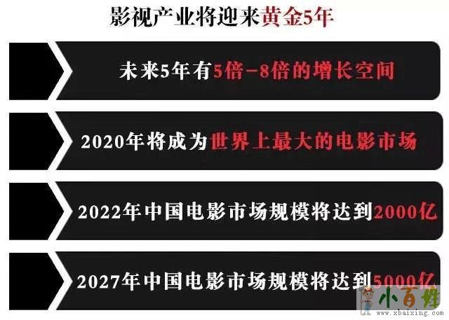 电影投资:主要投资的是院线电影,也就是在电影院上映的电影,赚取的是电影的票房分成。后期还有版权费、广告植入等收益www.xbaixing.com。投资电影,成为电影大众联合出品人,咨询VX(1243945886)了解电影项目。